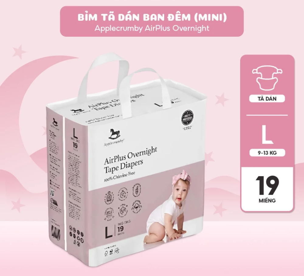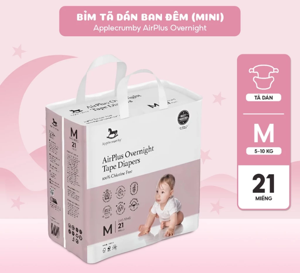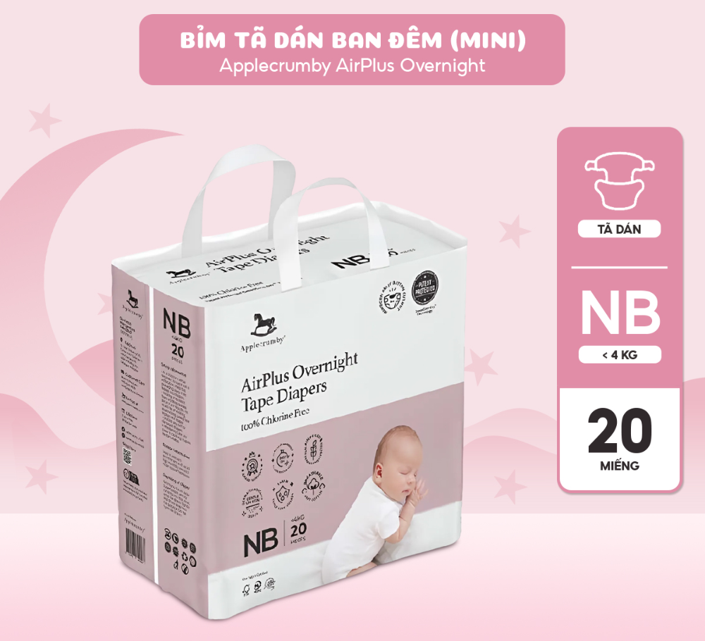 Bỉm tã dán đêm Applecrumby Airplus Overnight Mini Tape
