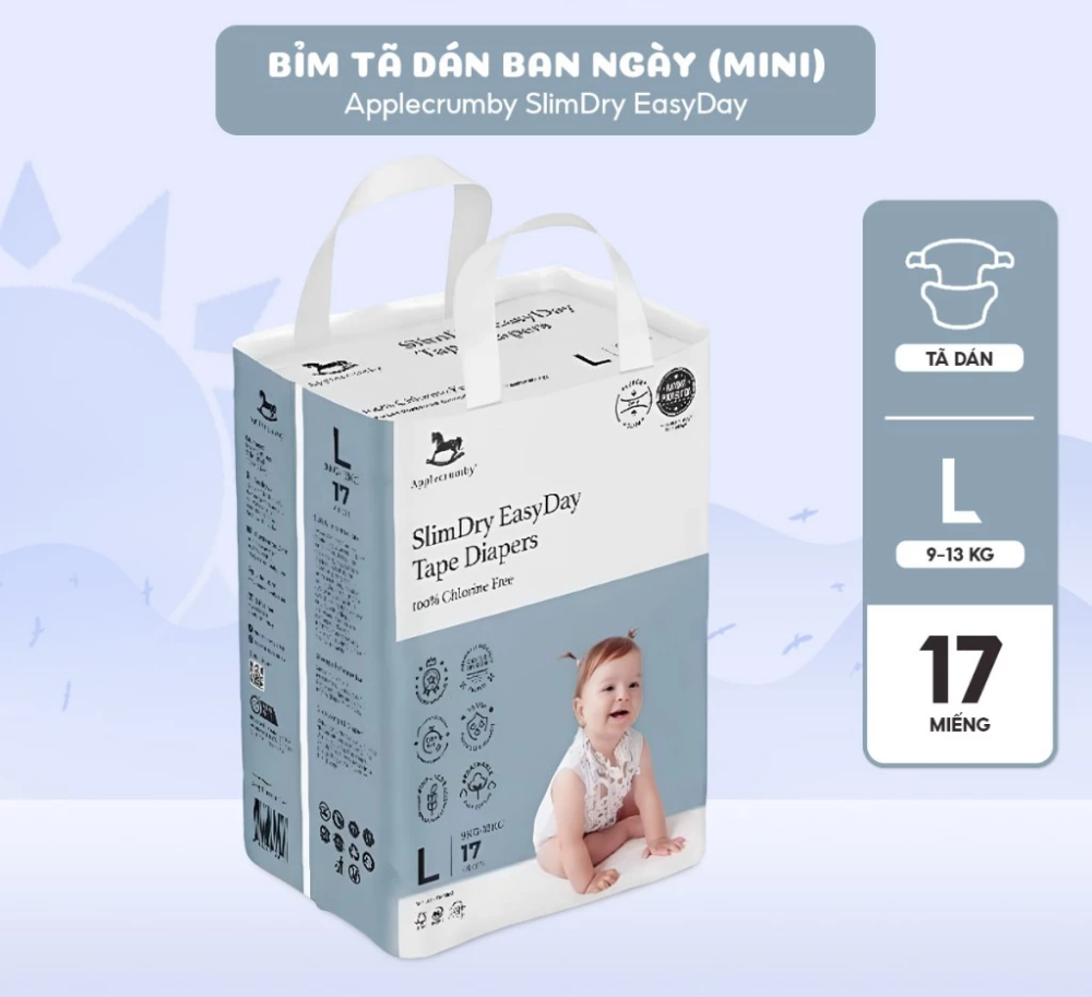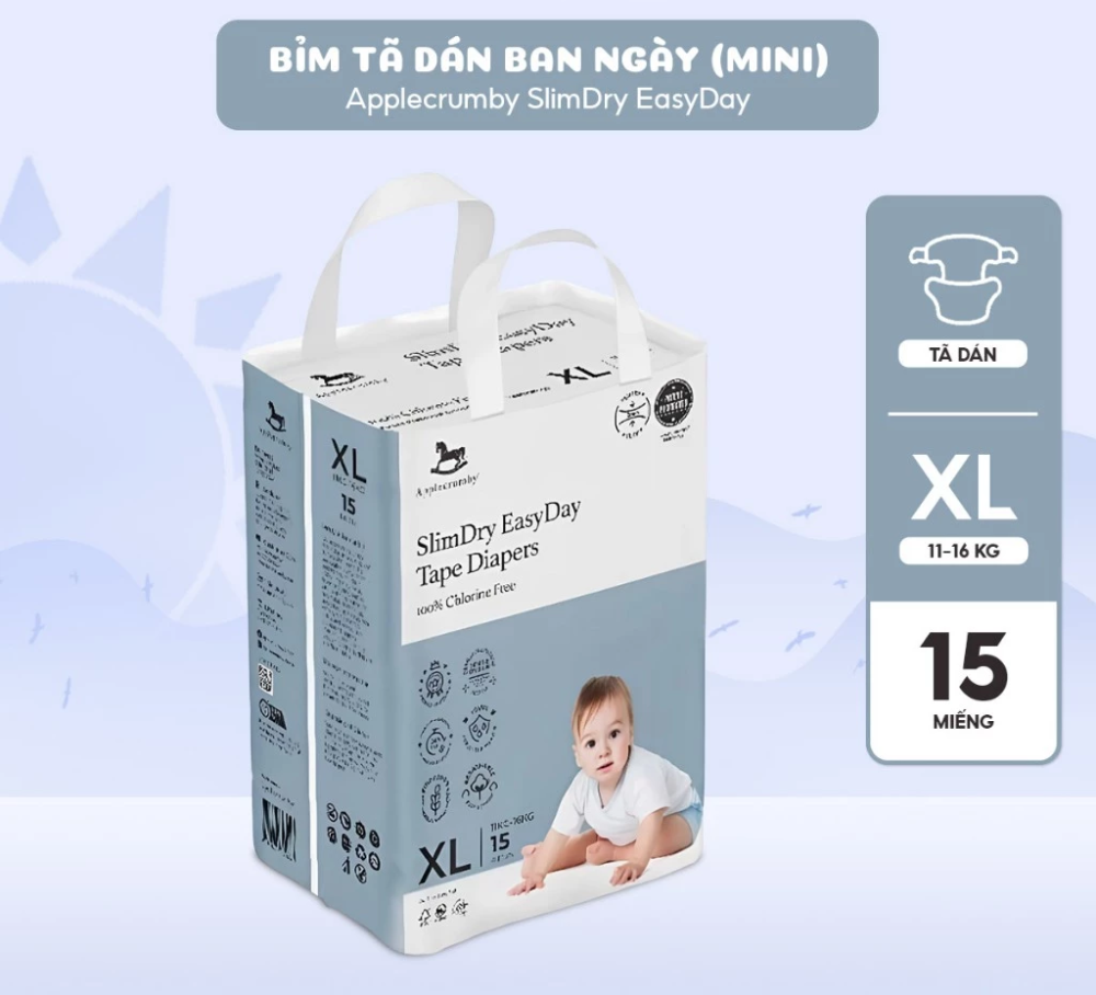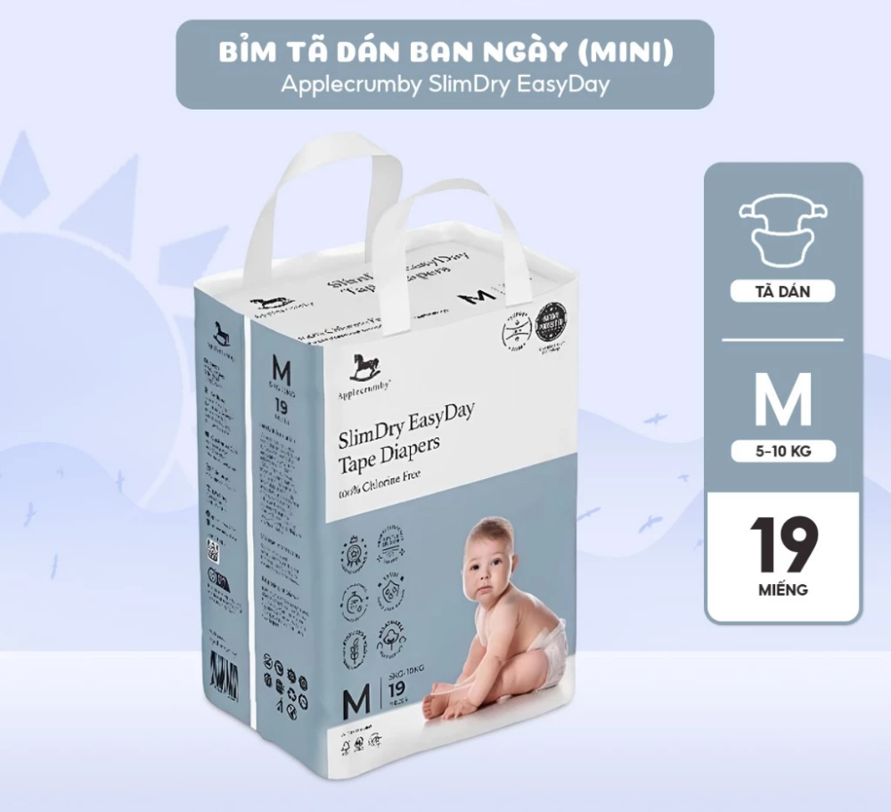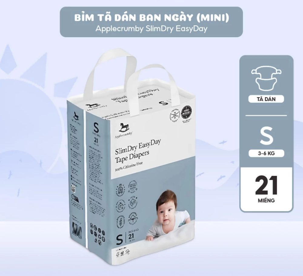 Bỉm tã dán ngày Applecrumby Slimdry Easyday Mini Tape