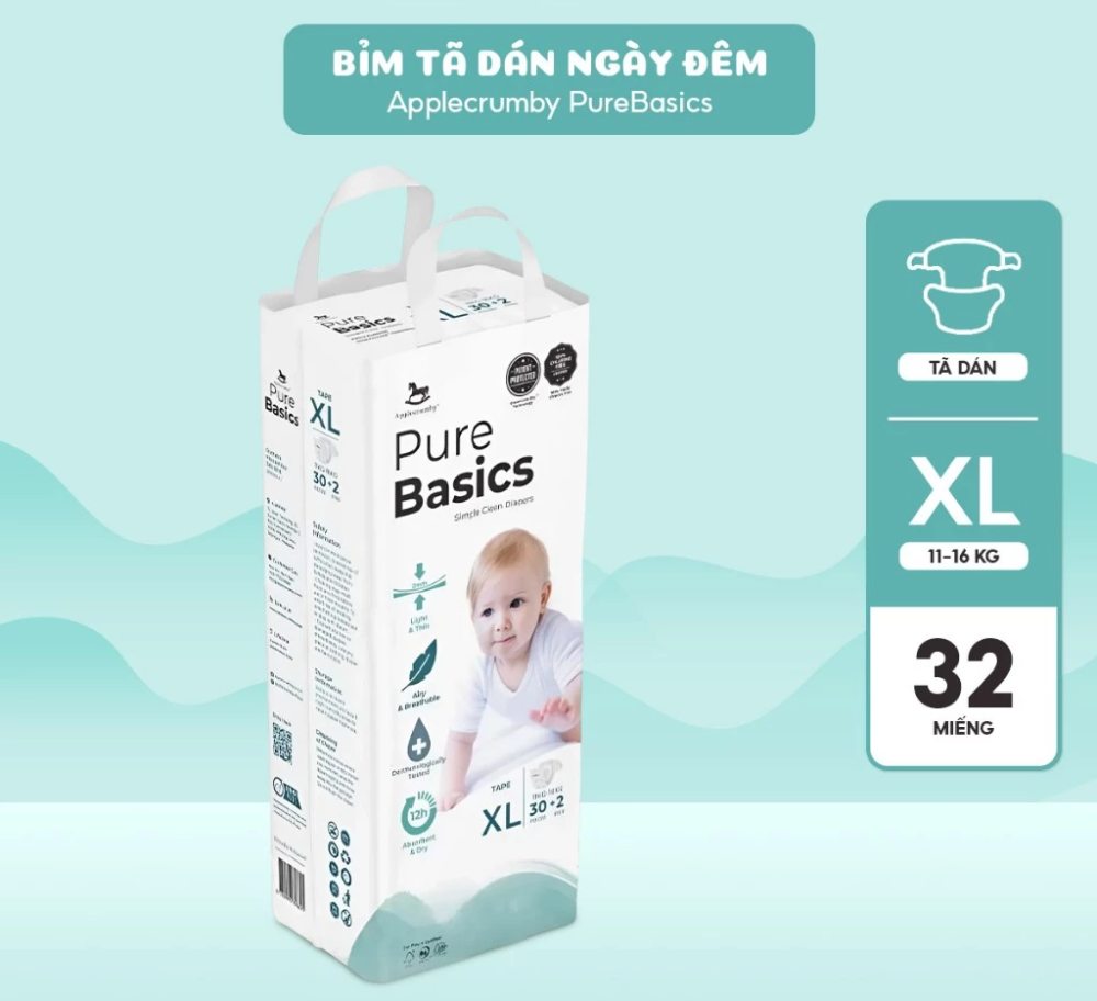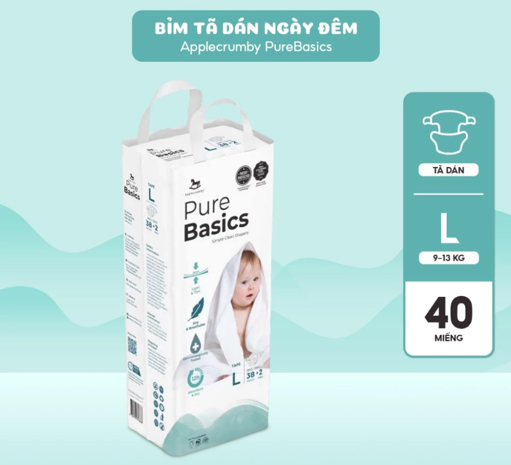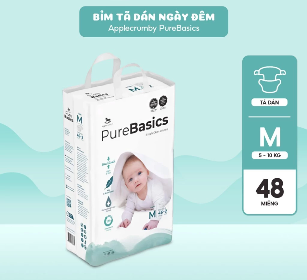 Bỉm tã dán ngày đêm Applecrumby Purebasics Diapers Tape