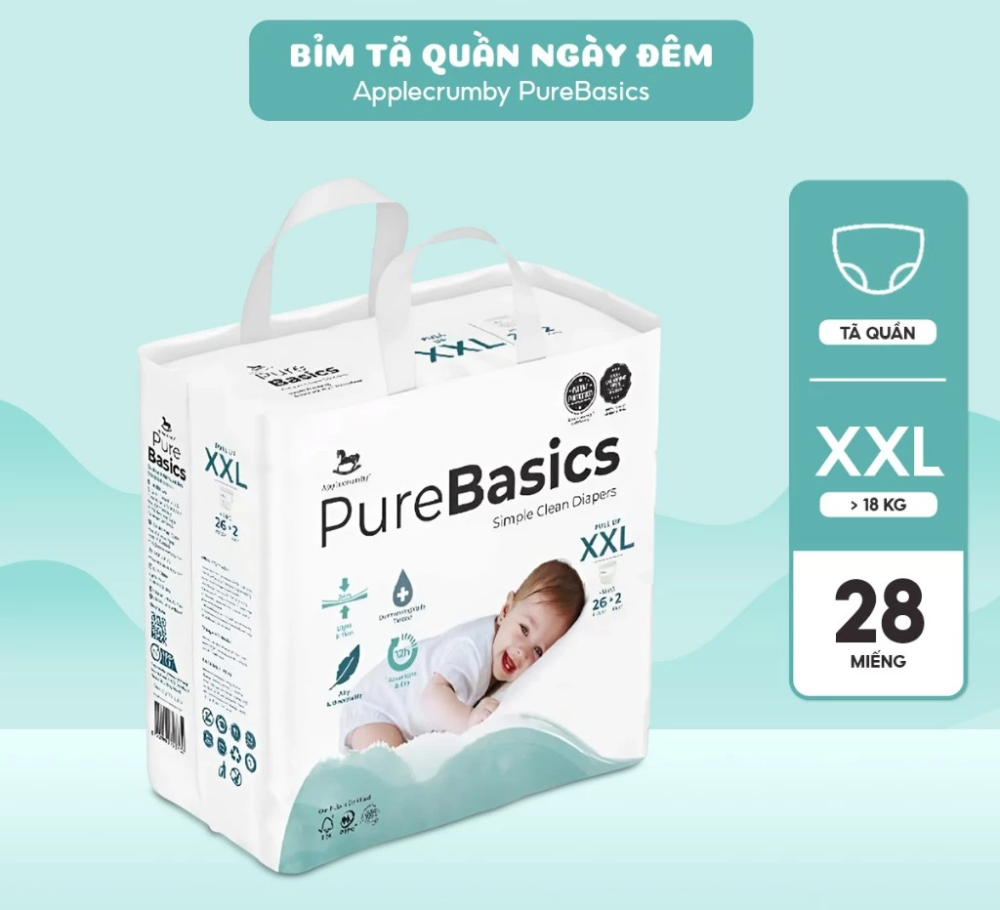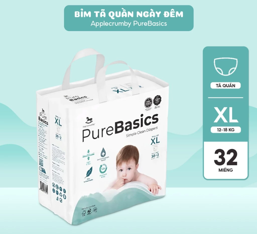 Bỉm tã quần ngày đêm Applecrumby Purebasics Diapers Pull Ups