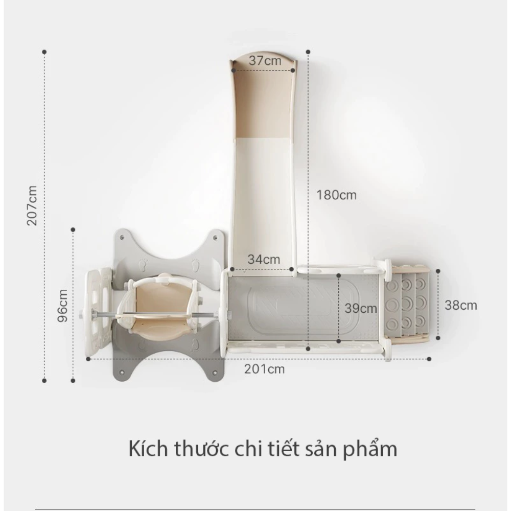 - Xích đu điều chỉnh độ cao, có thanh chắn cho bé nhỏ, tháo rời khi bé lớn