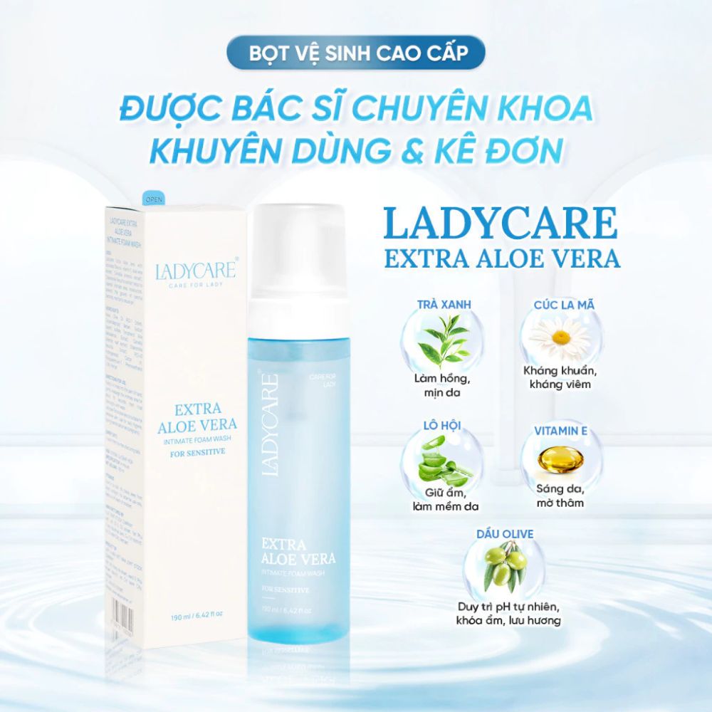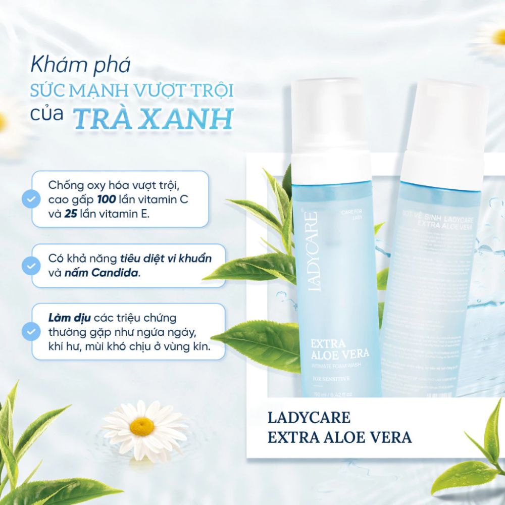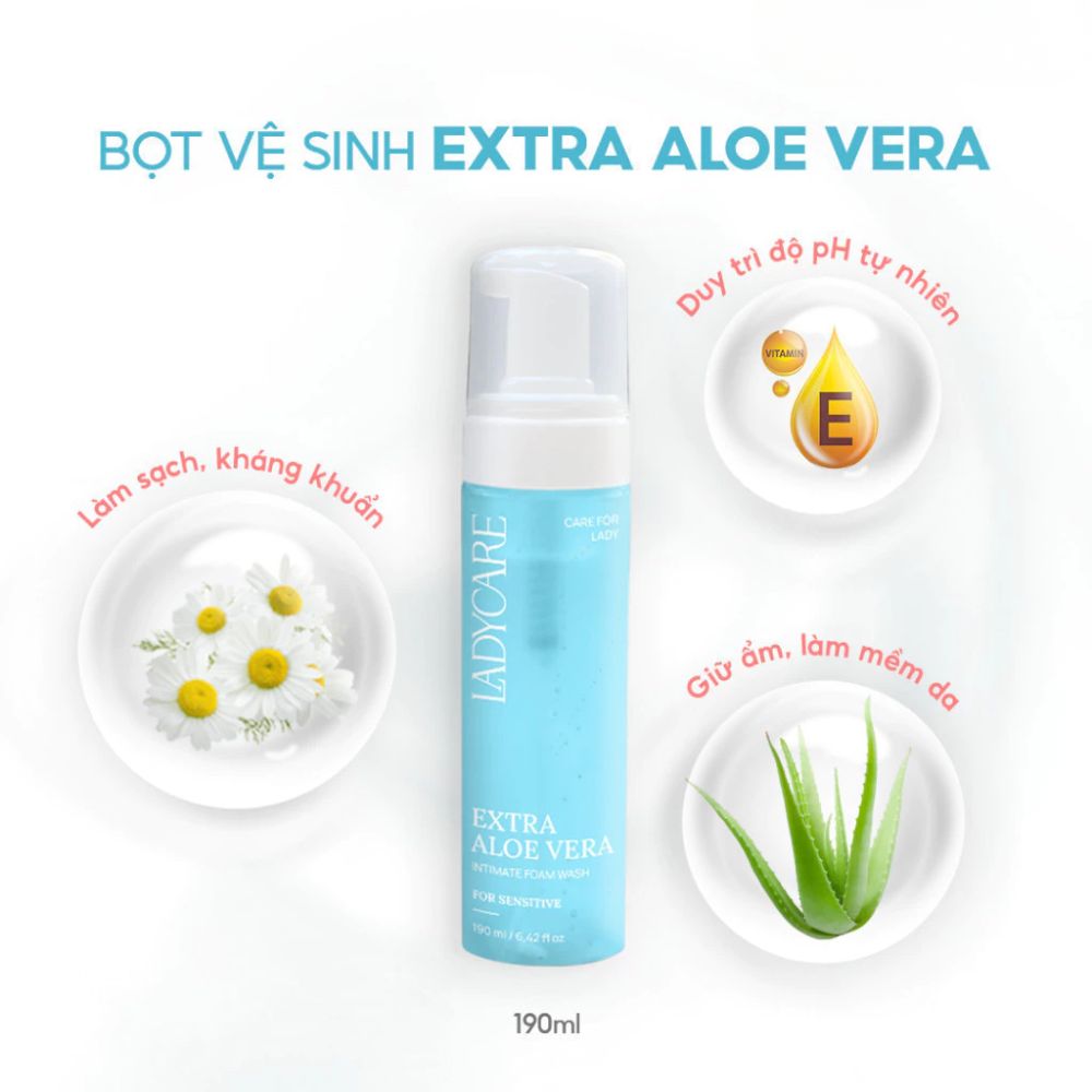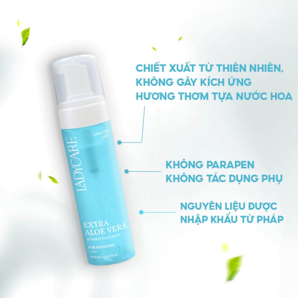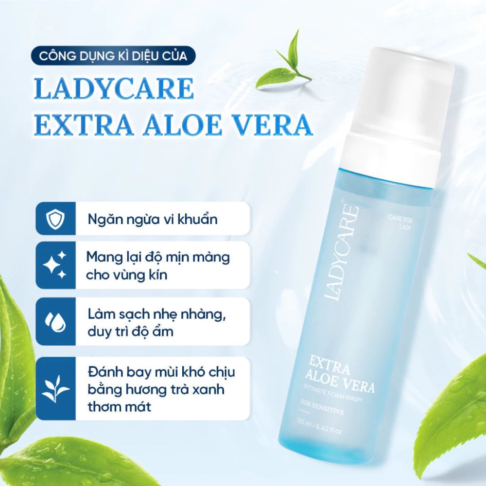 – Tên: Dung Dịch Vệ Sinh Phụ Nữ Dạng Bọt Ladycare Extra Aloe Vera 190ml + 90ml Cho Da Nhạy Cảm