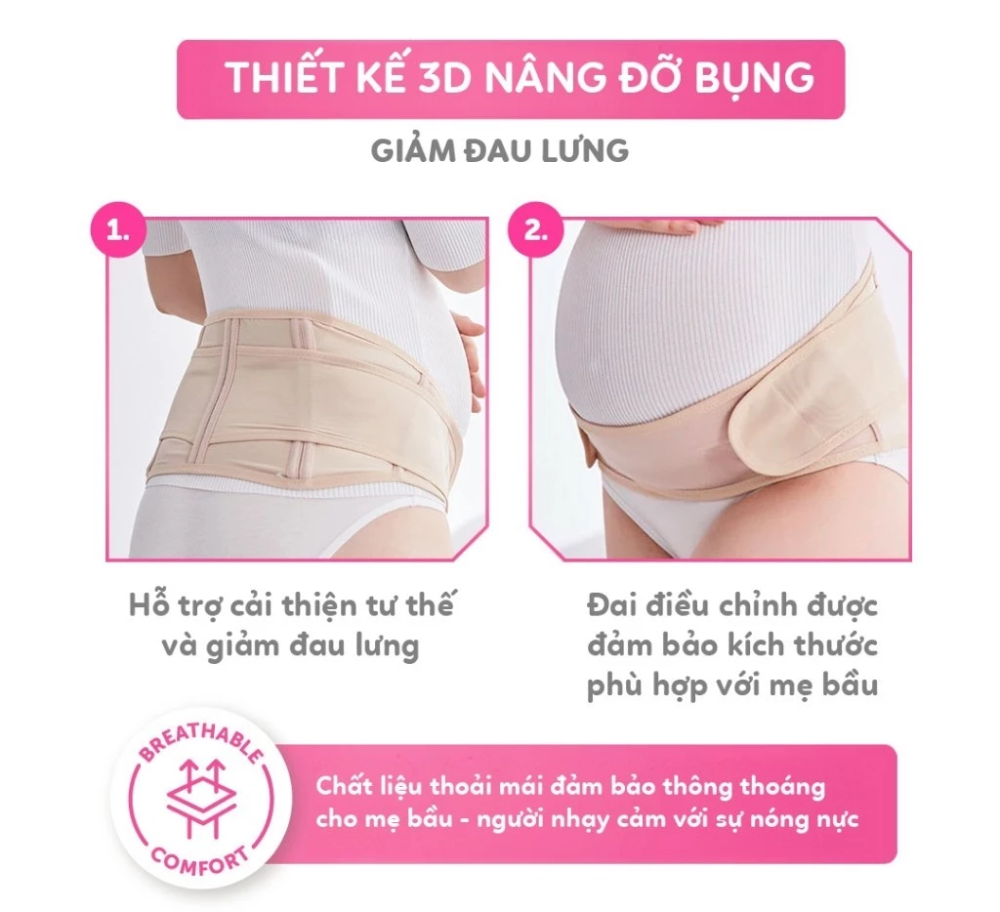 • Thiết kế: 3D nâng đỡ bụng bầu, hỗ trợ giảm đau lưng