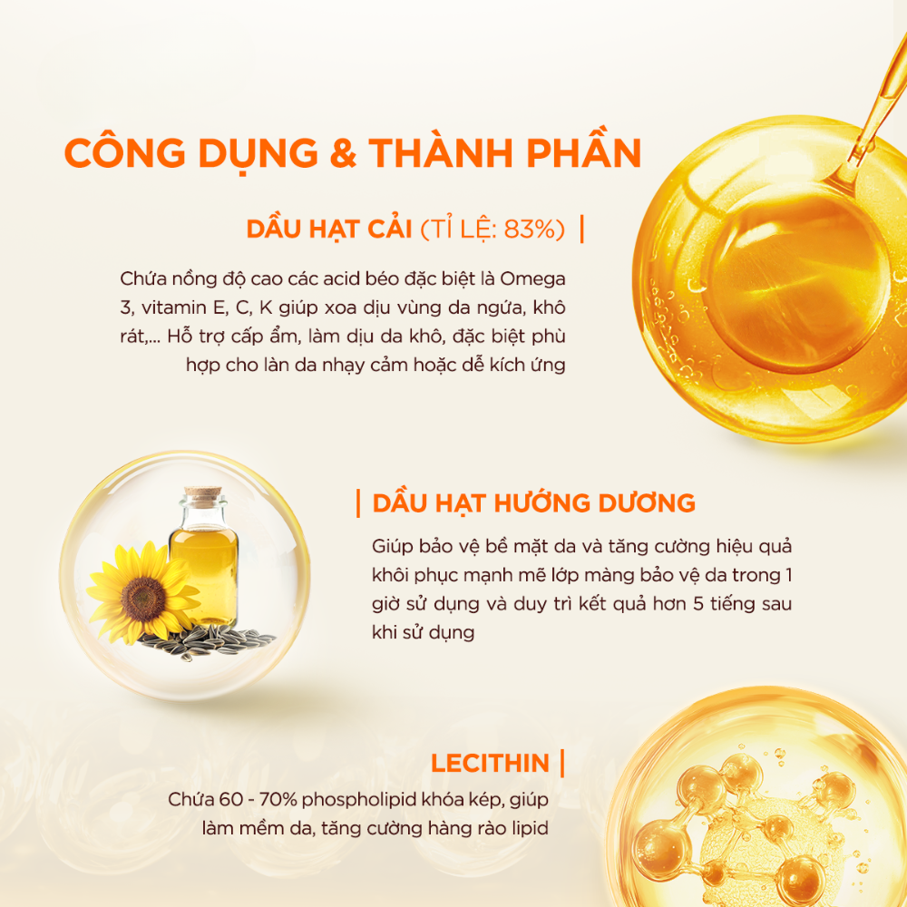 - Dưỡng ẩm, làm mềm và làm dịu làn da.