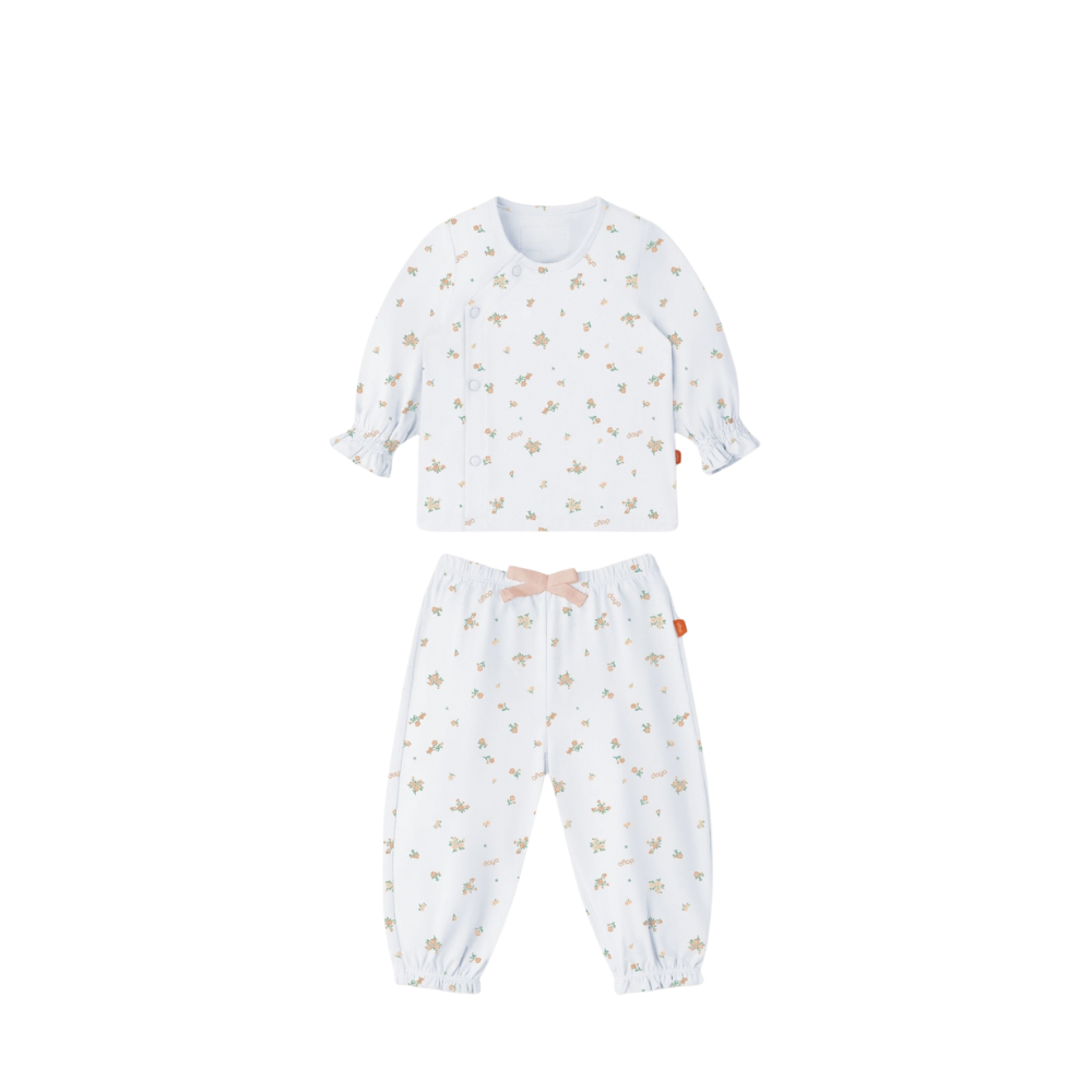 - Bộ quần áo sơ sinh dài tay in hoa nhí, thiết kế nhẹ nhàng và nữ tính