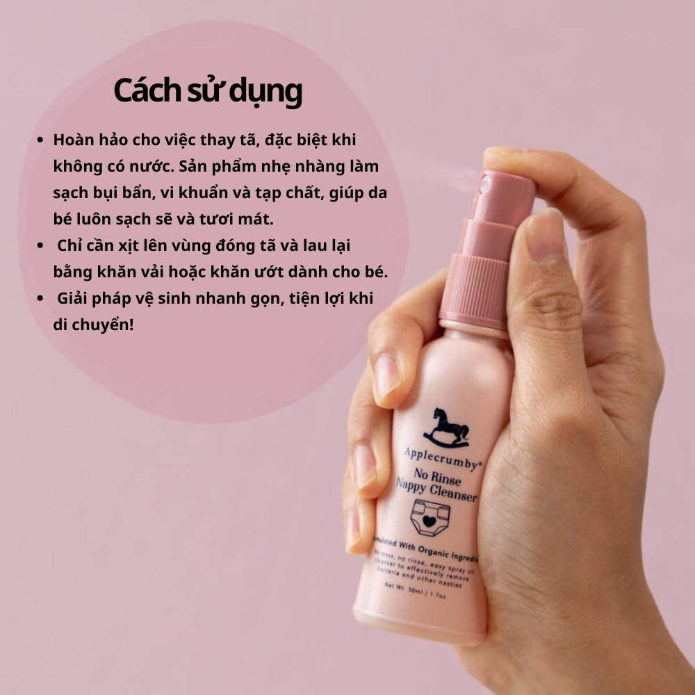Dung dịch làm sạch cho bé không dùng nước Applecrumby No Rinse Nappy Cleanser 50ml
