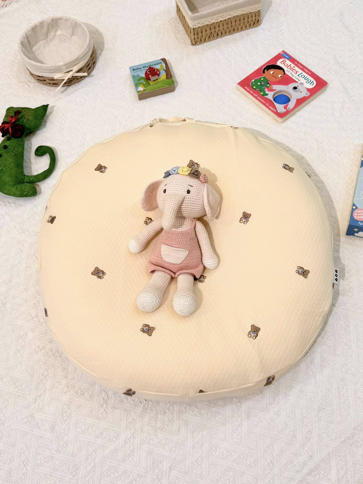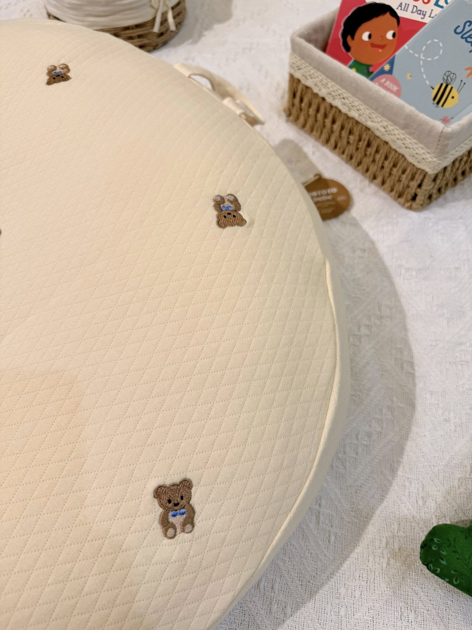 Gối chống trào ngược Rototo Bebe Airmesh nguyên khối – Gỗ sồi nơ gấu