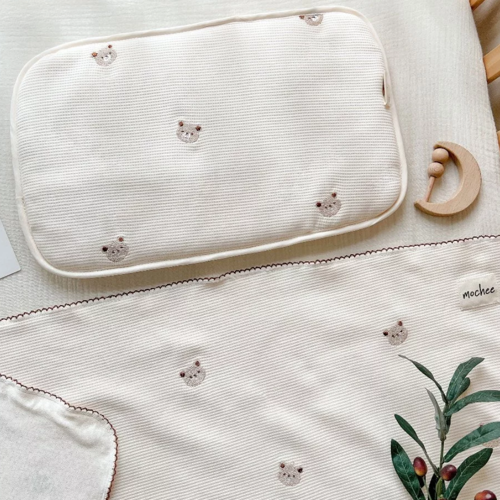 Gối đầu Cotton tổ ong airmesh Mochee – Gấu thêu