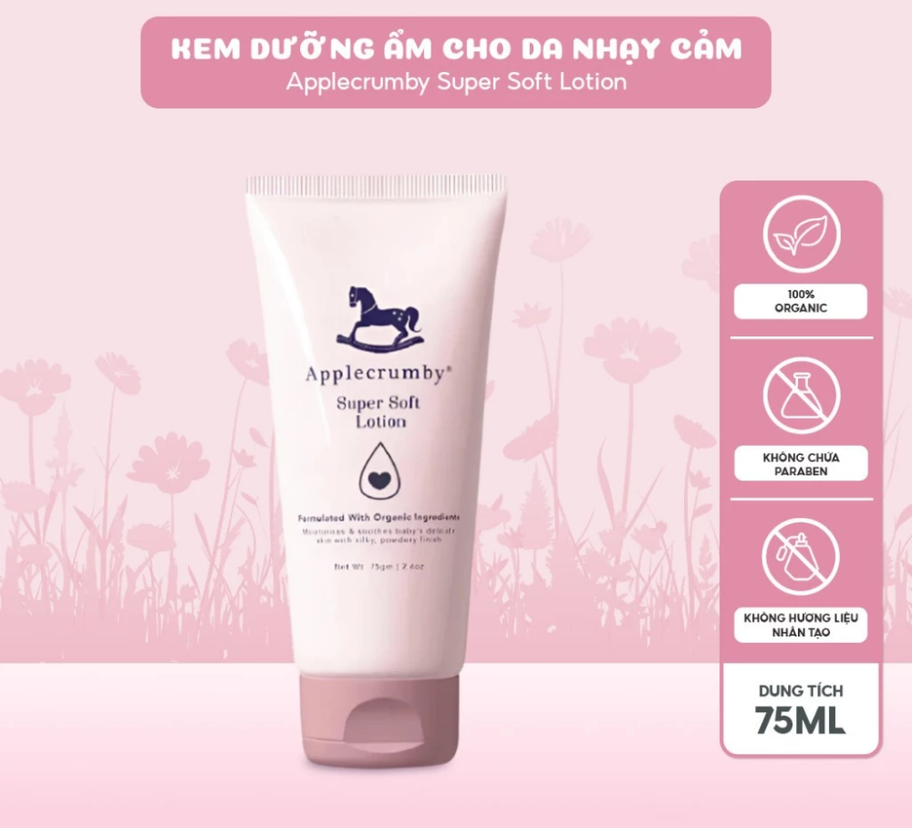 - Kem dưỡng ẩm làm dịu cho da nhạy cảm Applecrumby Super Soft Lotion với công thức hoàn toàn tự nhiên.