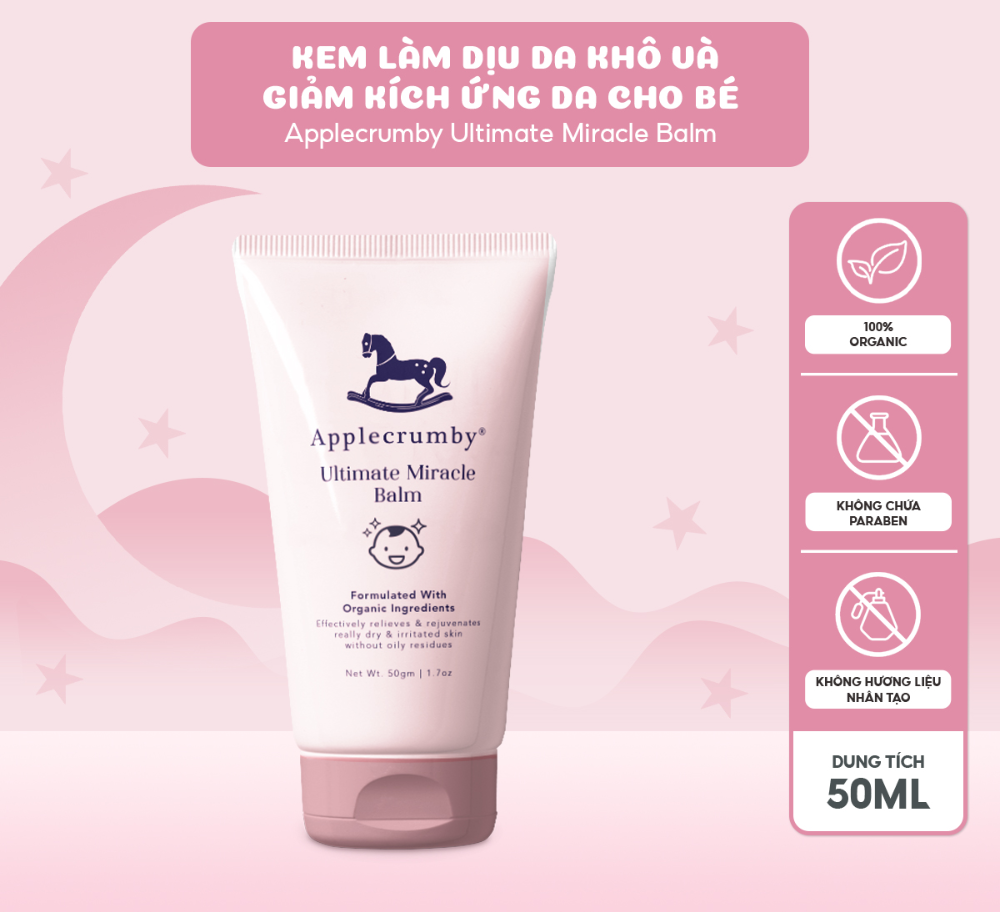 - Hãy nâng niu làn da mỏng manh của bé với Kem làm dịu da khô và giảm kích ứng da Applecrumby Ultimate Miracle Balm. Công thức đặc biệt dành cho trẻ sơ sinh.