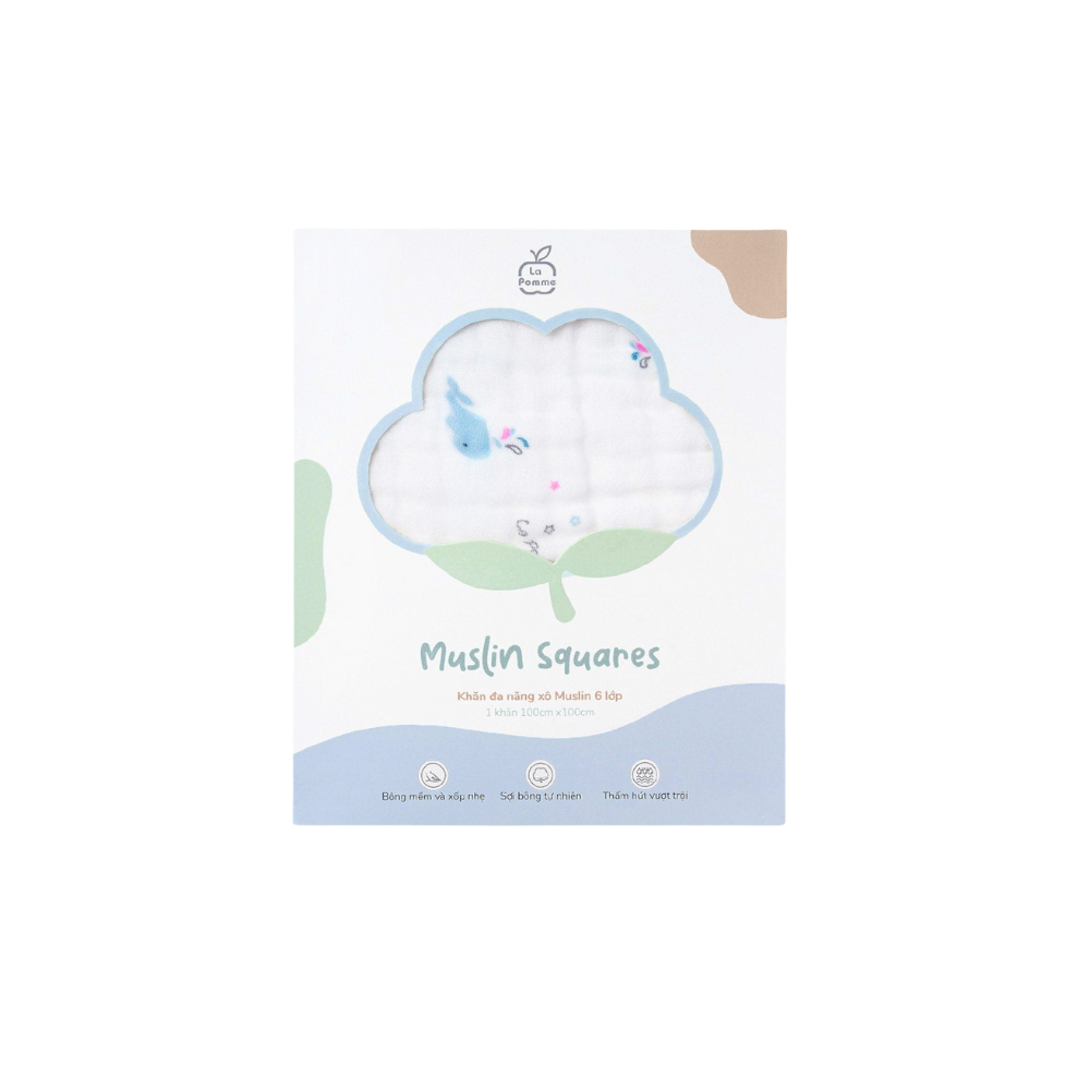 Khăn đa năng Xô Muslin 6 Lớp La Pomme họa tiết (100x100cm)