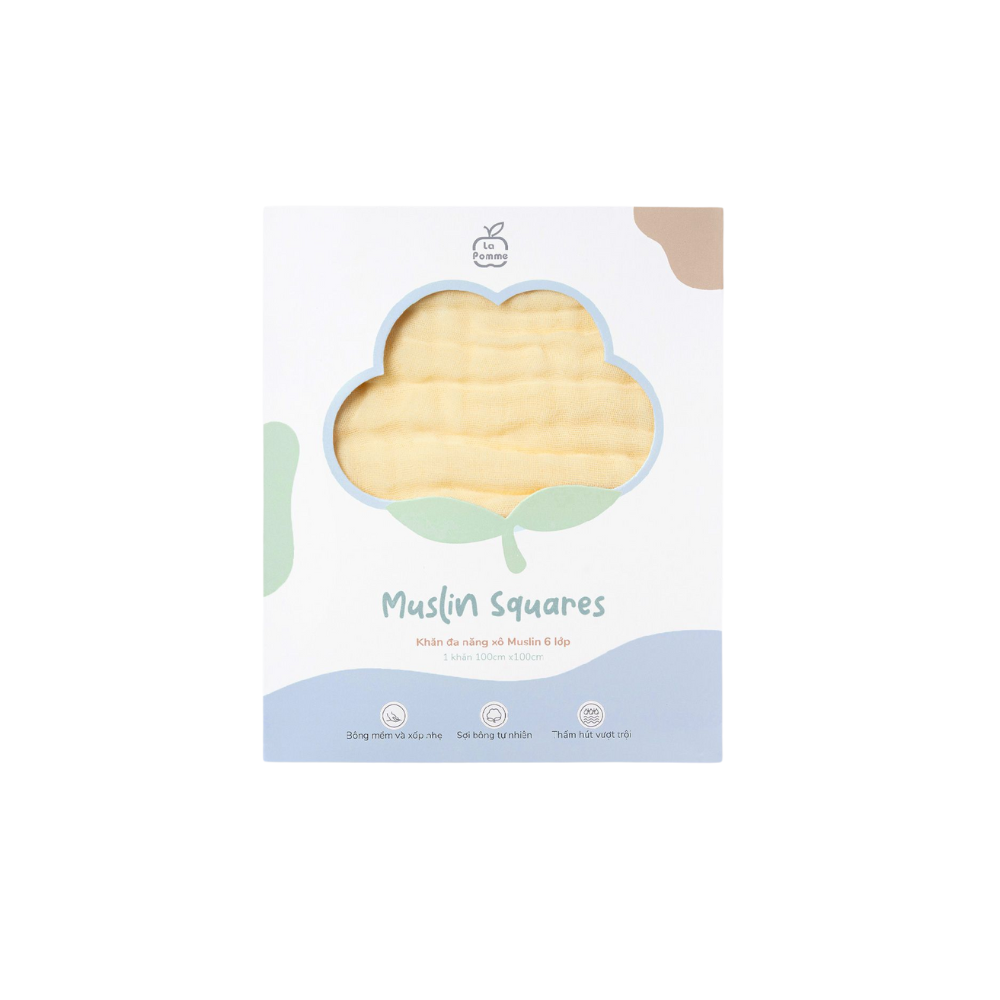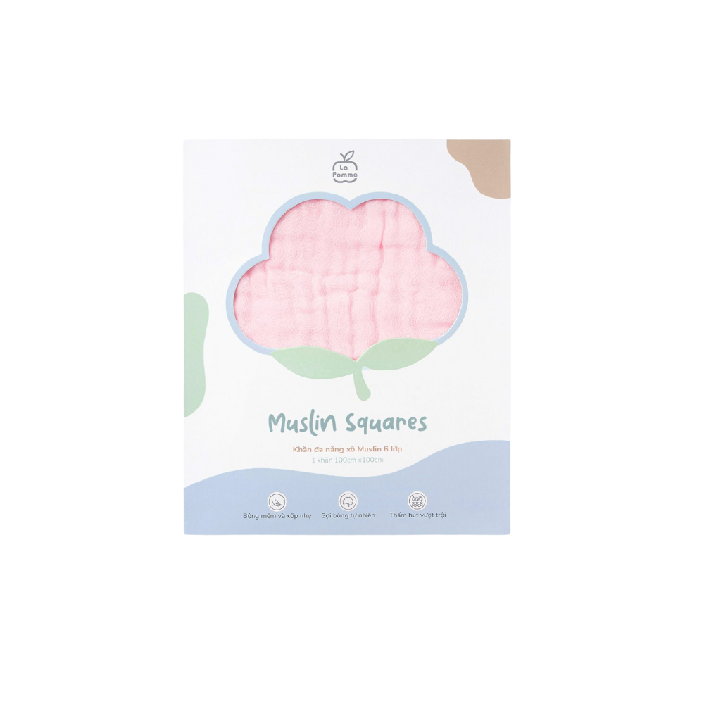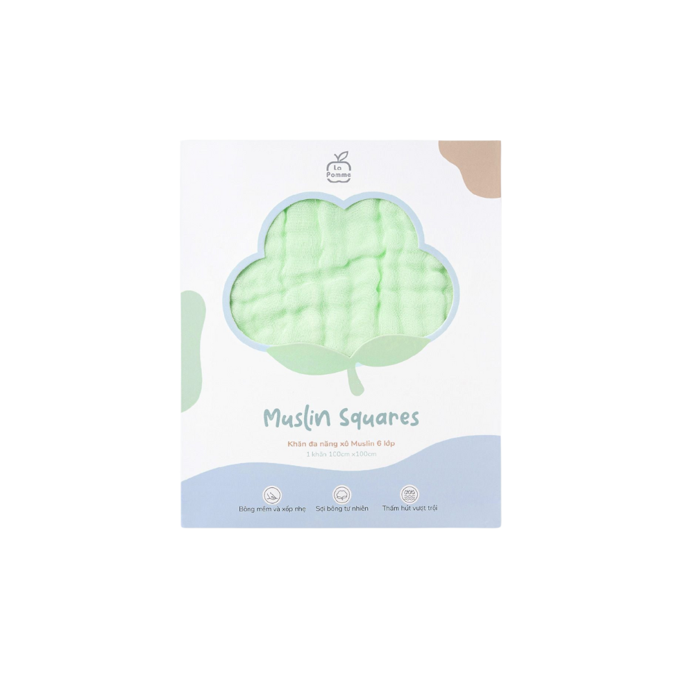 Khăn đa năng Xô Muslin 6 Lớp La Pomme trơn màu (100x100cm)