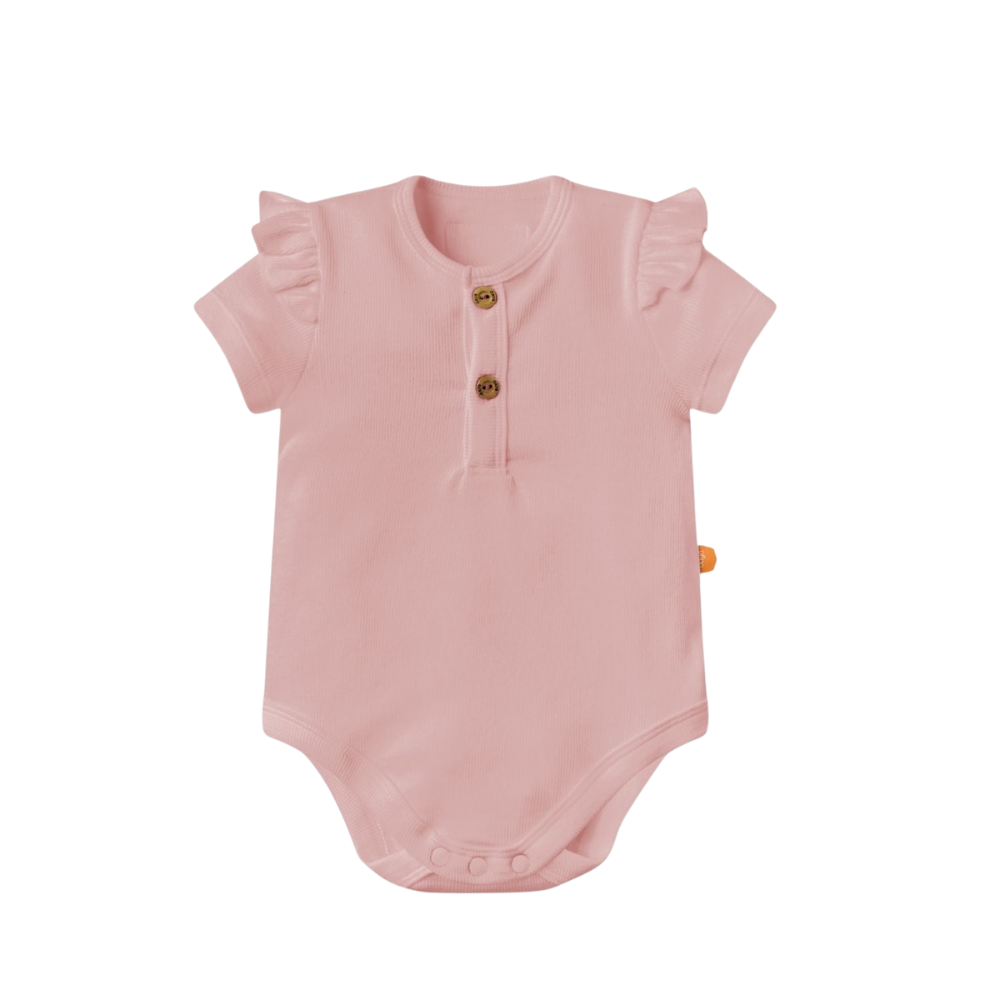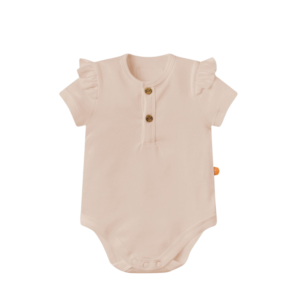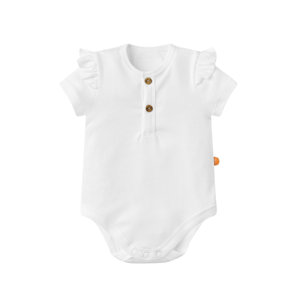 - Bodysuit liền tay ngắn, bèo vai nhẹ nhàng, nữ tính