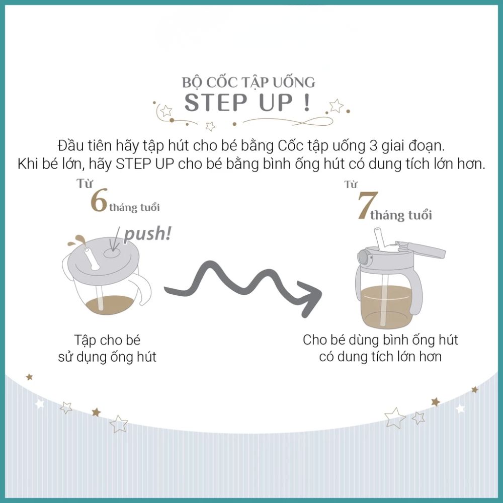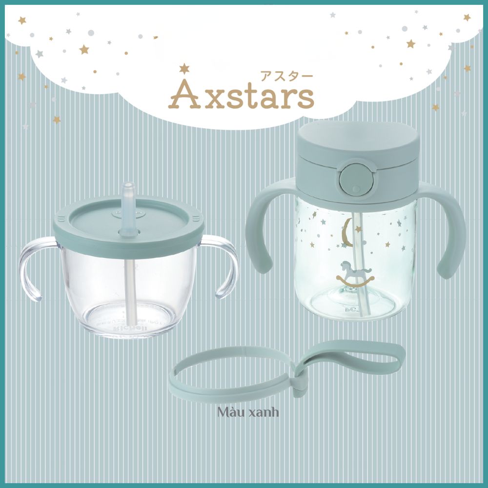 - Cốc tập uống 3 giai đoạn dùng khi bé ở nhà và Bình ống hút 200ml Axstars dùng cho bé khi ra ngoài chơi hoặc đi học.