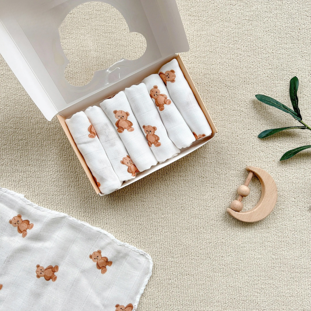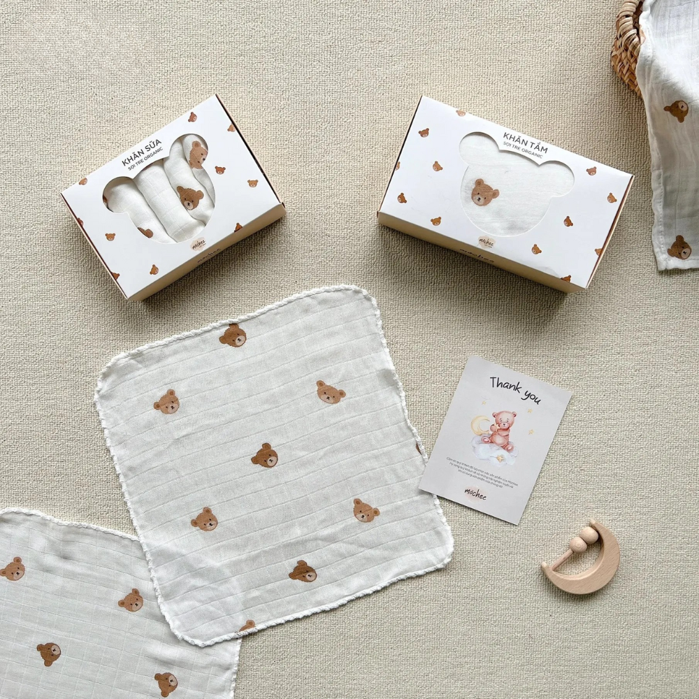 Set 6 khăn sữa vải xô sợi tre organic – Đủ mẫu