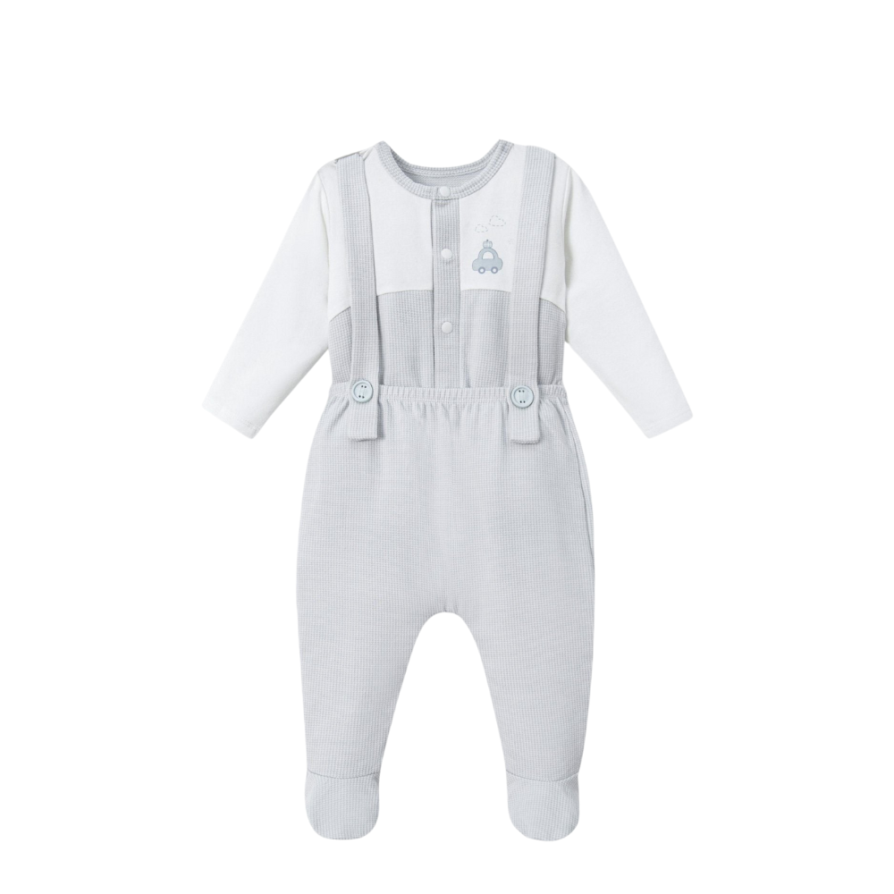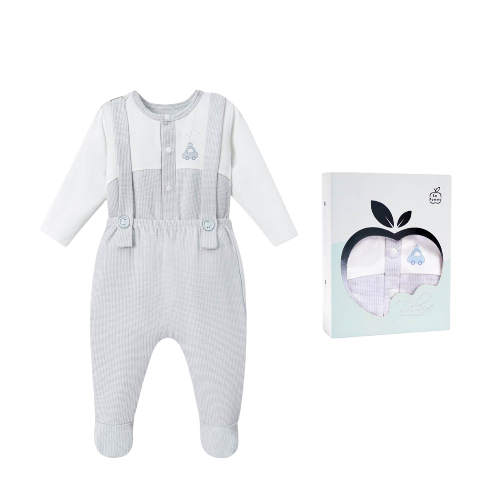 Thành phần set: 1 quần yếm liền tất, 1 áo rời cúc thẳng