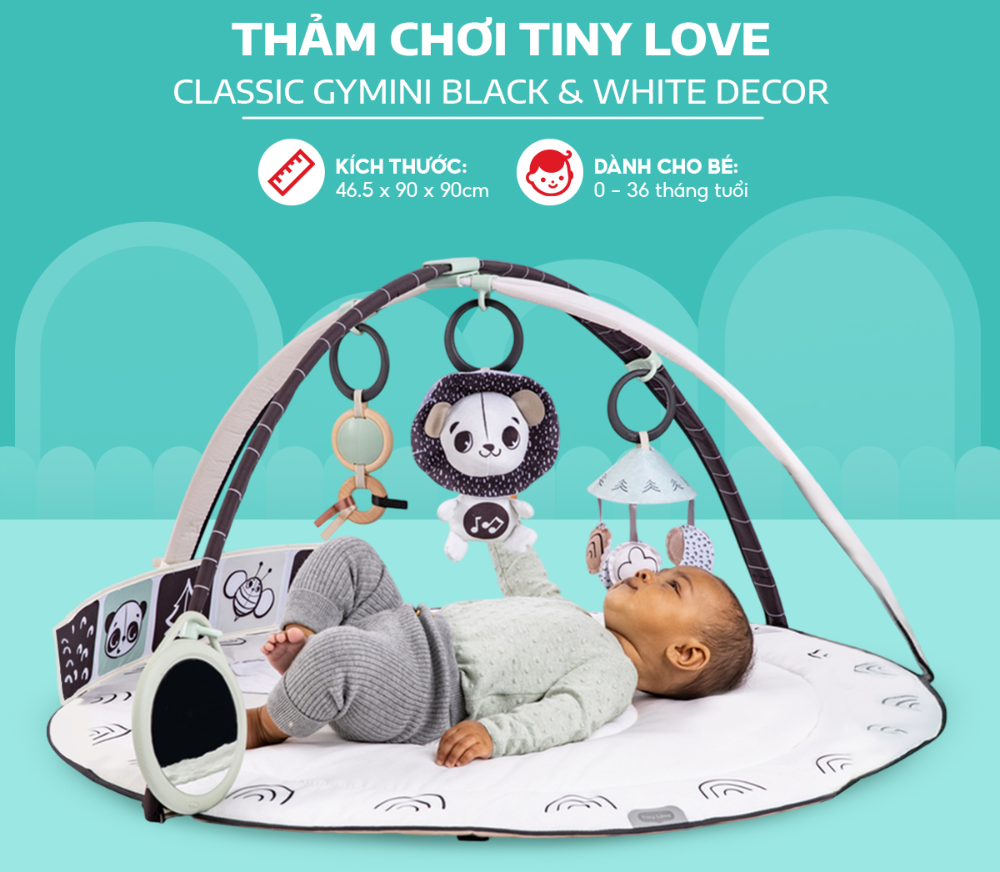 - Thảm chơi Tiny Love Black & White Decor Gymini là vật dụng không thể thiếu cho sự phát triển và trưởng thành của bé.